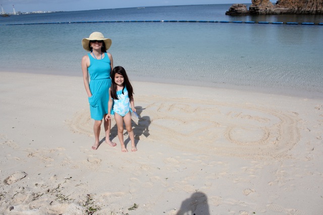 IMG_6325 Published June 27, 2013 at 640 × 426 in After 30 years… Our trip back to my homeland: The Beautiful Island of Okinawa, Japan! ← Previous Next → Mia and I on the beach. Mia and her daddy drew a note in the sand for me. 🙂