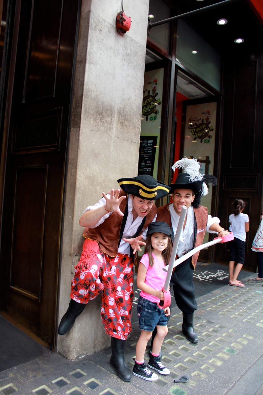 IMG_7001 Published July 30, 2013 at 853 × 1280 in London, England: Part One – Tips and Photos of Buckingham Palace, Hamleys and Madame Tussauds ← Previous Next → Mia with pirates at Hamleys!